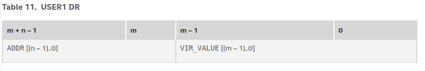 SLD HUB IP Configuration Register- sld_hubに接続されているsld_nodeの情報や、USER1 DRの寸法がわかる。