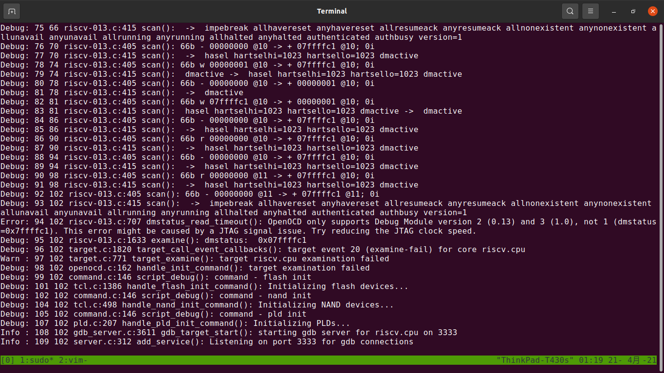 sudo /opt/riscv-openocd/bin/openocd -f ../tcl/target/rv32xsoc.cfg