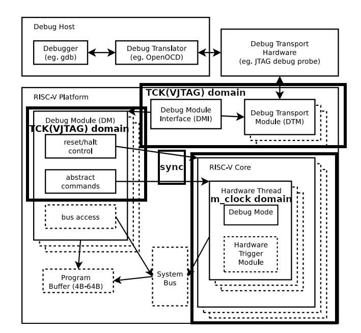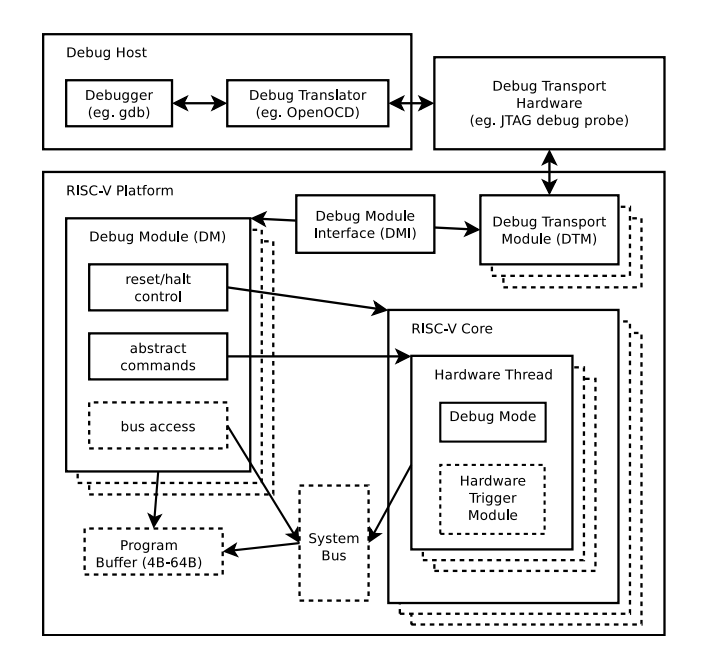 - リセット などが挙げられる。 なお、Debuggerが介入してきた場合は、hartはD-Mode(Debug Mode)で動作を行う。 D-Modeでは、基本的にはM-Modeと同じだが、割り込みが無効になり、例外はデバッガが対処を行う。また、デバッカーから命令が供給されるまで、haltする。